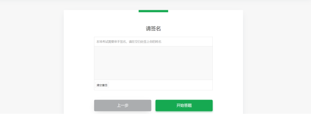 2.2 进入考试后,考生需根据屏幕提示在签名区域手写签名,然后“开始答题”。