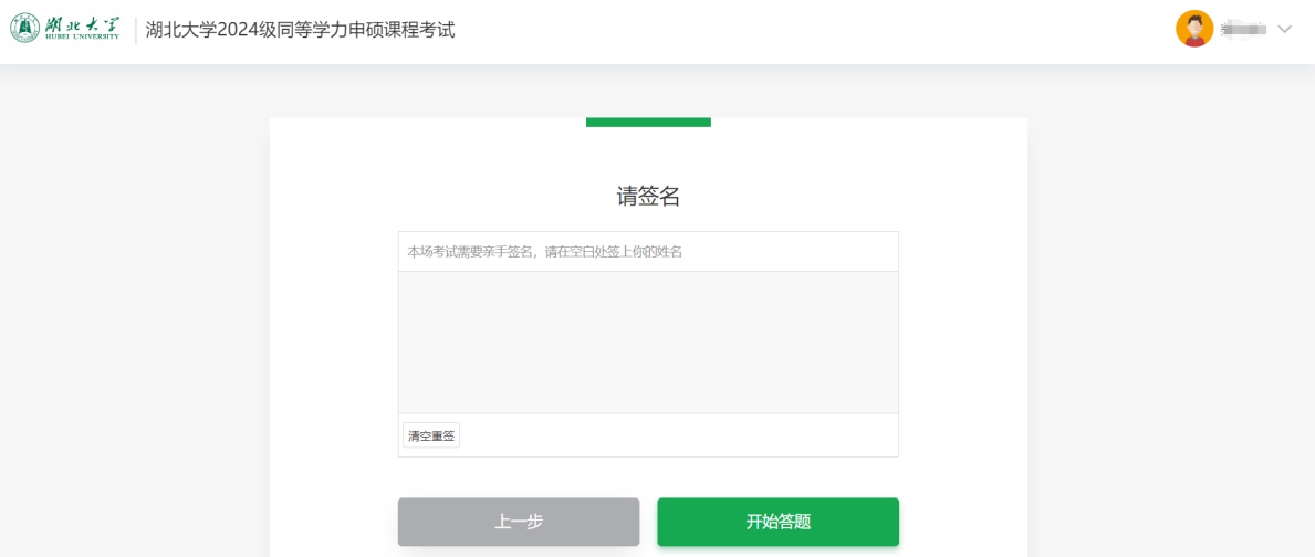 2.2 进入考试后,考生需根据屏幕提示在签名区域手写签名,然后“开始答题”。